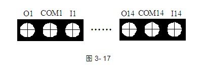 I、COM:組成反饋輸入端,接無源觸點;為實現檢線,I與COM之間接4.7kΩ終端電阻。