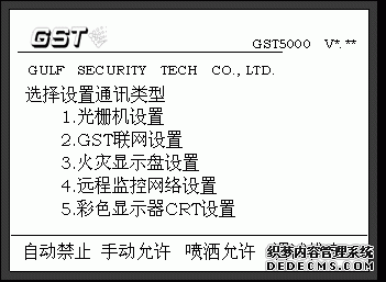 JB-QB-GST500、JB-QG/QT-GST5000火災(zāi)報警控制器(聯(lián)動型)(以下簡稱為控制器)通過與不同功能的網(wǎng)卡聯(lián)接可以實現(xiàn)GST系列 控制器間的聯(lián)網(wǎng);通過光柵測溫通訊板與光柵測溫機通訊,實現(xiàn)光柵測溫機的火警與故障檢測;也可與CRT顯示系統(tǒng)聯(lián)接完成圖形化監(jiān)控。控制器對通訊卡運行狀 態(tài)進(jìn)行實時監(jiān)測,實現(xiàn)即插即用。GST500/ GST5000控制器界面顯示相同,以GST5000控制器顯示界面為例說明。1.2通訊系統(tǒng)的連接